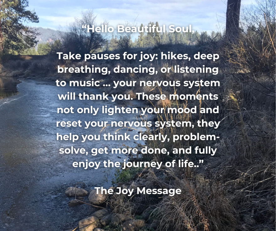 But if I take time for the pauses, throughout the day- a cup of tea on the porch listening to the birds, self-hypnosis or yoga stretch breaks, a hike in the mountains with my dog, or sitting quietly enjoying my cat on my lap, these things can powerfully shift my day toward lightness and joy.
