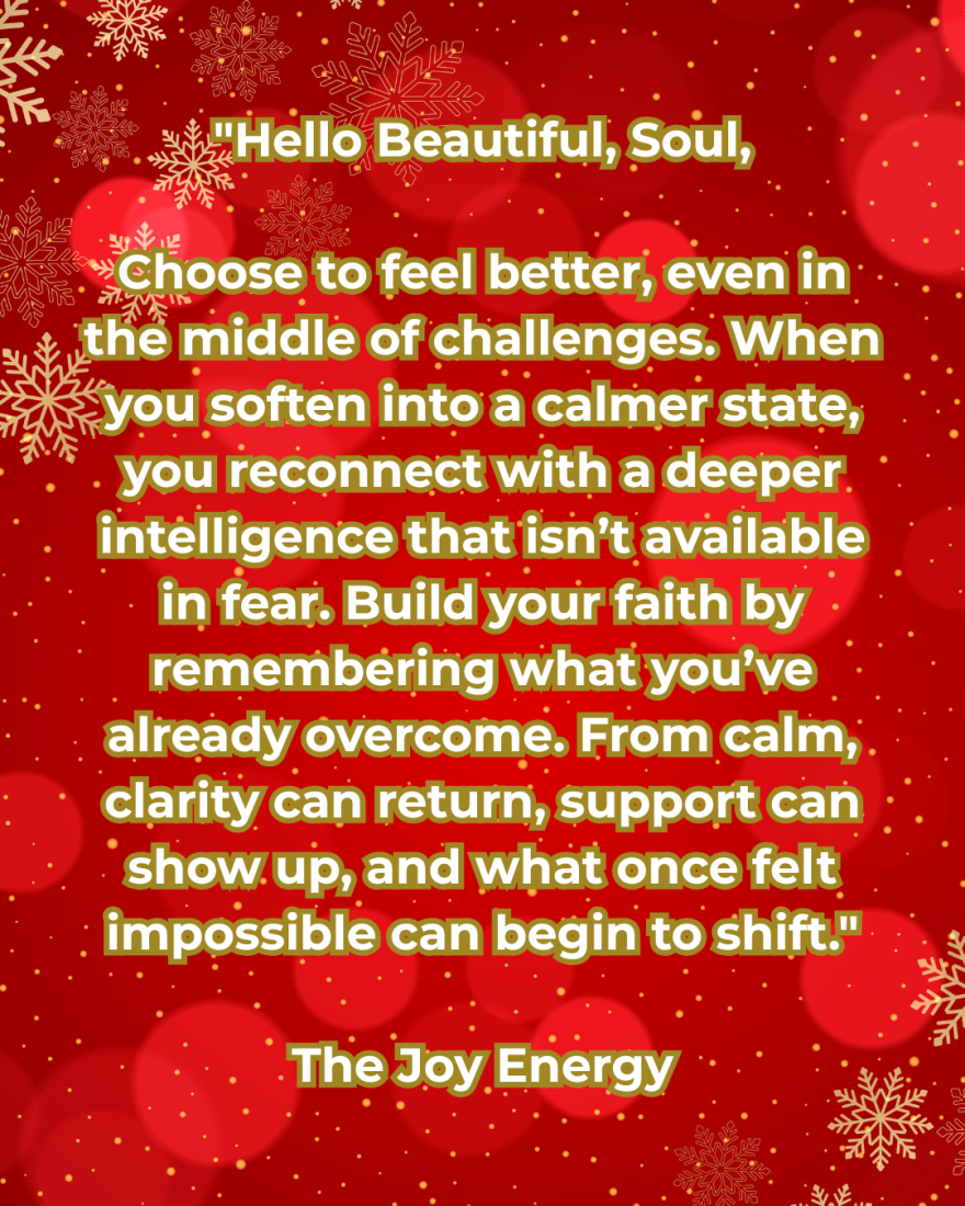 Choose to feel better, even in the middle of challenges. When you soften into a calmer state, you reconnect with a deeper intelligence that isn’t available in fear. Build your faith by remembering what you’ve already overcome. From calm, clarity can return, support can show up, and what once felt impossible can begin to shift."